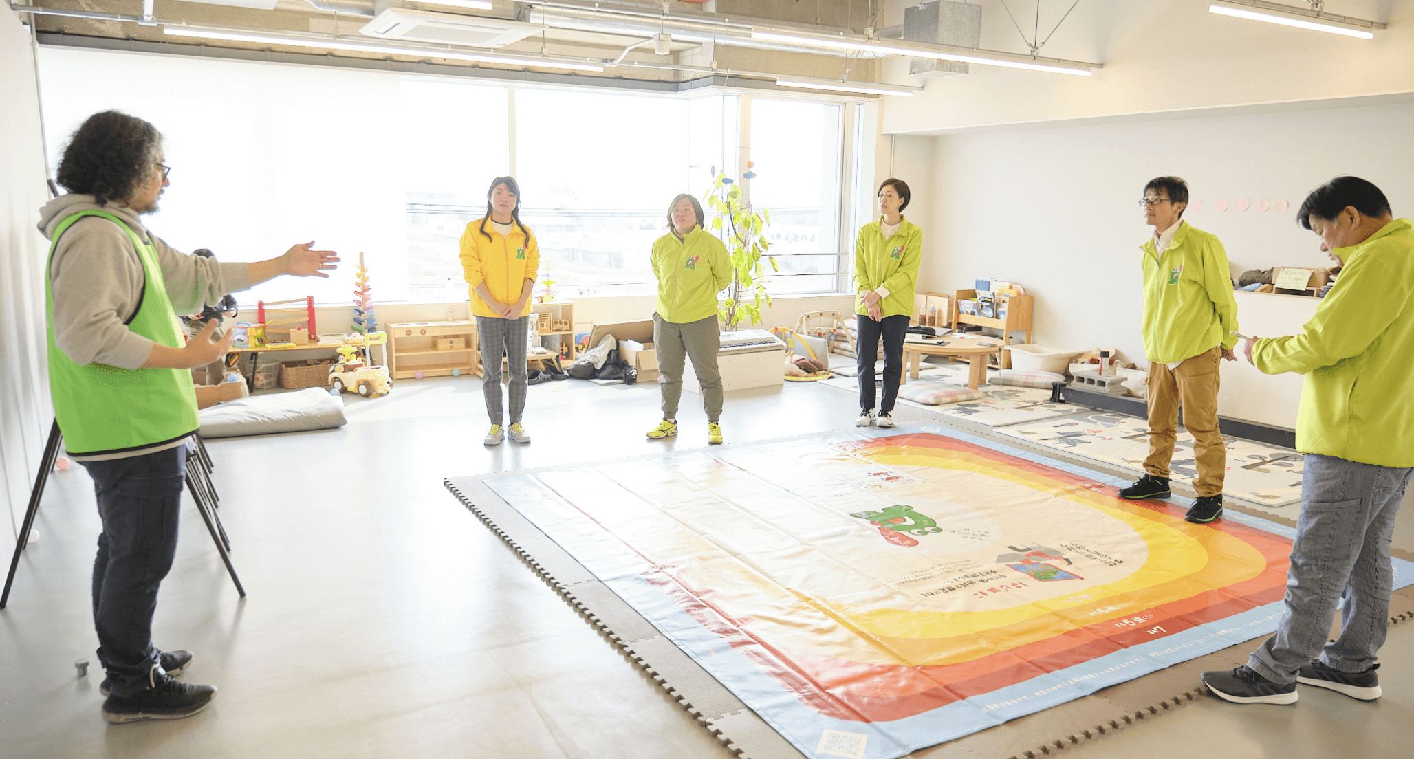 地震を想定したゆれ体験から、危険を直感的に理解し、避難行動を身につけることができます。このプログラムは、保育園・幼稚園・小学校へ無償で提供され、地域企業や各団体が活動を支えます。